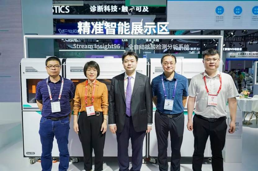南昌市人民政府副市長趙捷,國家藥品監(jiān)督管理局醫(yī)療器械監(jiān)管司原副司長王樹才,廣州達(dá)安基因股份有限公司副總經(jīng)理汪洋、副總經(jīng)理蔣析文、華中大區(qū)銷售總監(jiān)李虎、市場總監(jiān)陽梅芳等領(lǐng)導(dǎo)和嘉賓共同出席見證了全自動核酸檢測分析系統(tǒng)Stream Insight96新品發(fā)布的重要時(shí)刻!