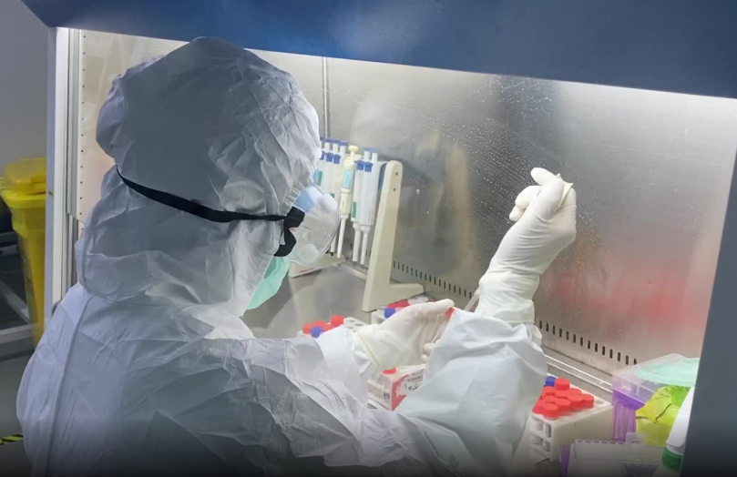 云康中心實(shí)驗(yàn)室工作人員檢測(cè)新冠病毒樣本。拍攝 朱子榮