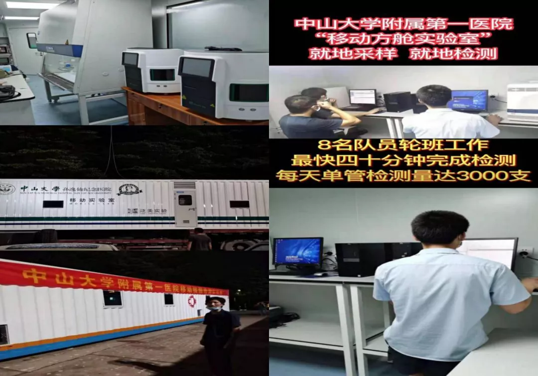 同一地點(diǎn),他們還協(xié)助了中山大學(xué)孫逸仙紀(jì)念醫(yī)院“移動(dòng)方艙實(shí)驗(yàn)室”的儀器安裝調(diào)試。此“移動(dòng)方艙實(shí)驗(yàn)室”是一輛13.7米長(zhǎng)的移動(dòng)核酸檢測(cè)車,通過(guò)“就地采樣、就地檢測(cè)”的方式,日檢測(cè)量可達(dá)3000-5000人份(10比1混采可達(dá)3萬(wàn)-5萬(wàn)人份),真正做到了與病毒賽跑,與時(shí)間賽跑,為抗擊疫情作出了積極貢獻(xiàn)。