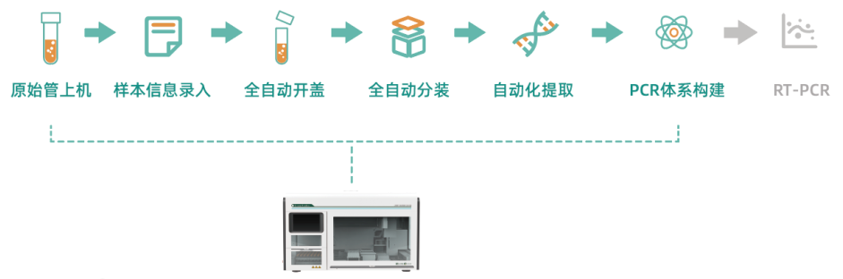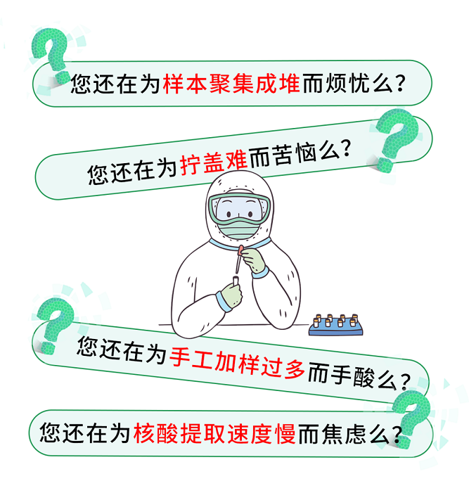 全程自動(dòng)化完成原始管的信息錄入,開(kāi)關(guān)蓋,移液和核酸提取,實(shí)現(xiàn)樣本進(jìn),核酸出的自動(dòng)化過(guò)程。