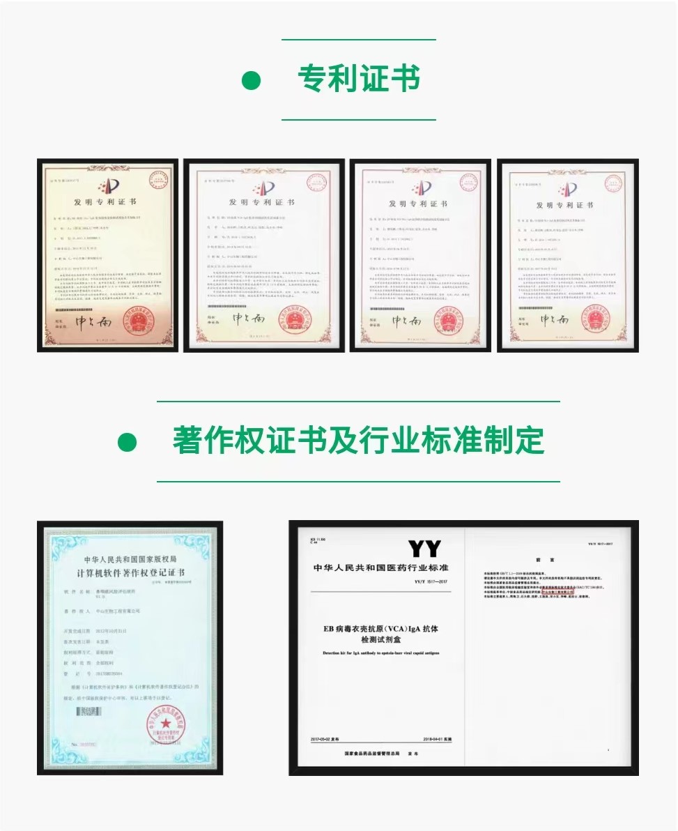 近期,廣州達安基因股份有限公司(以下簡稱“達安基因”)下屬全資子公司—中山生物工程有限公司(以下簡稱“中山生物”、“公司”)申請的兩項EB病毒檢測技術:“EB病毒NA1-IgA抗體酶聯(lián)免疫檢測試劑盒及其檢測方法”、“EB病毒衣殼抗原IgA抗體酶聯(lián)免疫檢測試劑盒及其檢測方法”相繼獲得國家知識產(chǎn)權局的發(fā)明專利授權。
