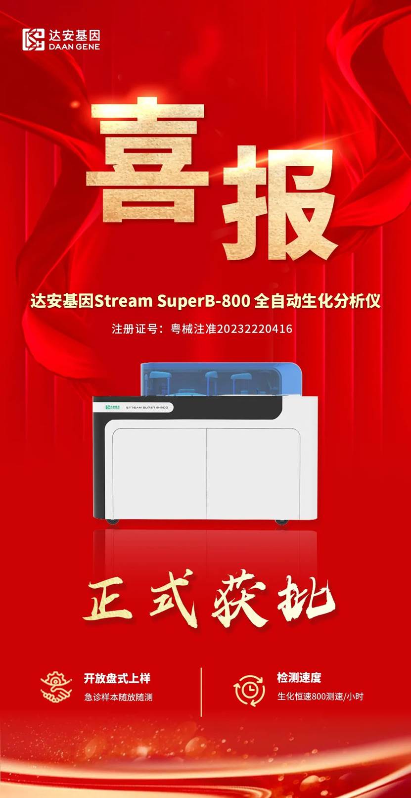 喜報 | 達安基因Stream SuperB-800全自動生化分析儀獲批上市